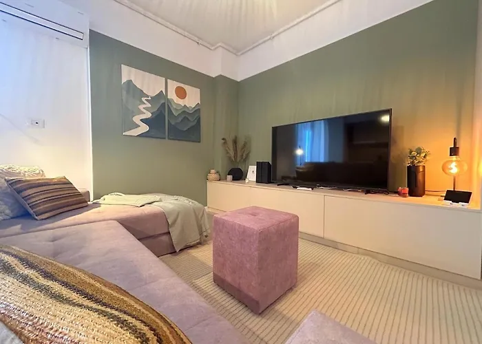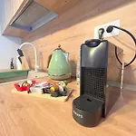 - ❓Is there a kitchen available at Green Serenity apartment for guest use?Yes, Green Serenity apartment is furnished with an equipped kitchen and offers an electric kettle, a fridge, and kitchenware as well.
